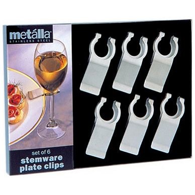 Stemware Plate Clips set of 6프로다인 스템웨어 플레이트 클립(SC-6)파티나 모임에서 접시에 끼운 후 와인잔 등의 스템웨어를 걸어 놓을 수 있는 클립입니다.클립 안쪽에 합성 고무가 붙어있어 접시에 끼우기 쉽습니다.사용시 접시와 글라스의 파손에 주의하여 주시기 바랍니다.■ 크기 : 6.5cm X 3 cm■ 수량 : 6개■ 소재 : 스테인레스 스틸(stainless steel), 합성 고무 외