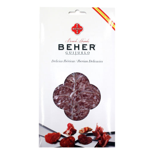 스페인 BEHER의, 최고등급 베요타(Bellota) 등급의 돼지고기에 파프리카, 스파이스 등의 향신료를 넣어 스파이시하게 말린 소시지 입니다.